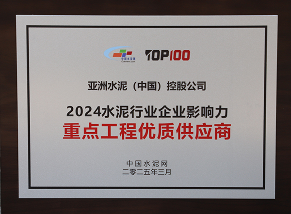 2025年3月13-14日,中國水泥網(wǎng)在浙江杭州舉辦“第十四屆中國水泥產(chǎn)業(yè)峰會(huì)暨 TOP100頒獎(jiǎng)典禮”,亞泥(中國)獲頒“2024水泥行業(yè)企業(yè)影響力重點(diǎn)工程優(yōu)質(zhì)供應(yīng)商”獎(jiǎng)牌。