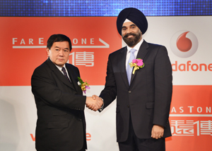 遠(yuǎn)傳電信于5月2日與國際電信巨擘Vodafone共同宣布結(jié)盟合作,由遠(yuǎn)東集團(tuán)徐旭東董事長(zhǎng)與Vodafone全球合作市場(chǎng)執(zhí)行長(zhǎng)Mr. Ravinder Takkar代表出席。透過本次結(jié)盟,遠(yuǎn)傳成為Vodafone在臺(tái)唯一簽約合作伙伴,可以提供廣大遠(yuǎn)傳用戶更優(yōu)惠的通訊費(fèi)率及更優(yōu)質(zhì)的通話質(zhì)量。未來也將積極整合國際聯(lián)盟伙伴現(xiàn)有資源,進(jìn)行云端運(yùn)算技術(shù)交流,延伸并縝密國際企業(yè)服務(wù)網(wǎng)絡(luò)。