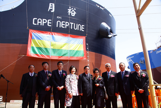 裕民航運(yùn)新加坡子公司委托中國最大船廠──上海外高橋造船公司,建造206,000載重噸海岬型散裝貨輪「裕月輪」(M.V. “Cape Neptune”),于4月22日假上海市外高橋船廠完成命名接船典禮,典禮由遠(yuǎn)東集團(tuán)徐旭東董事長親自主持,并邀請?jiān)蜚y行大中華區(qū)主席曾璟璇女士,擔(dān)任裕月輪之命名夫人。